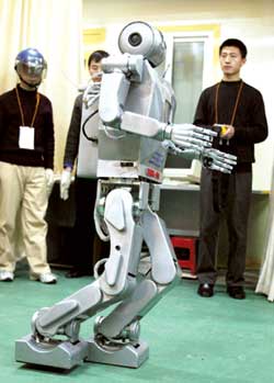 中新網(wǎng)12月29日電 隨著幾個(gè)太極拳動(dòng)作行云流水般的完成,昨天上午,我國(guó)首個(gè)仿人機(jī)器人在北京理工大學(xué)通過了國(guó)家863項(xiàng)目組的驗(yàn)收。驗(yàn)收專家認(rèn)為該機(jī)器人項(xiàng)目在系統(tǒng)集成、步態(tài)規(guī)劃和控制系統(tǒng)等方面實(shí)現(xiàn)了重大突破,標(biāo)志著我國(guó)仿人機(jī)器人研究已經(jīng)跨入世界先進(jìn)行列。