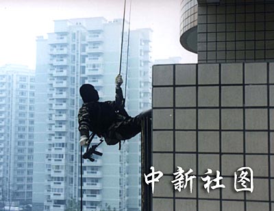 26日,成都首次反恐怖演習(xí)。在處置恐怖分子對某跨國公司辦公大樓實施的劫持人質(zhì)的演習(xí)中,特警秘密潛入大樓,準(zhǔn)備伺機(jī)行動。作者:劉真
