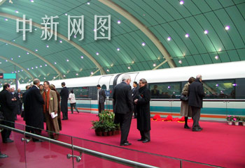 通車剪彩儀式在這條示范運營線的始發(fā)站——龍陽路站的站臺上舉行。儀式結束后,中德兩國總理登上列車一同前往終點站——上海浦東國際機場站。在體驗了風馳電掣的磁浮列車運行情形之后,兩國總理又一同參加了在上海國際新聞中心舉行的規(guī)模盛大的上海磁浮列車通車典禮,并發(fā)表熱情洋溢的講話。