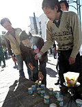 圖:中國工人悼念以自殺性爆炸中遇難同胞