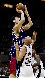 據(jù)朝鮮日報報道,姚明在接受當(dāng)?shù)孛襟w的采訪時說:“我非常感到幸福和光榮,如果出戰(zhàn)全明星賽,我一定要比出道戰(zhàn)表現(xiàn)的更好!睂嶋H上,姚明在他NBA的處女賽中一分未得(兩個籃板),與他的NBA新狀元秀身份不符?墒且γ饕运2米26的身高很快適應(yīng)了NBA的比賽節(jié)奏,作為最出色的新人號令天下。