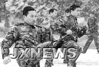 中新網(wǎng)1月7日電 “呵呵,在澡堂子里洗澡時(shí),滿身傷痕的隊(duì)員們都成了‘花斑豹’!弊蛉,記者在江西省武警總隊(duì)三支隊(duì)內(nèi),看到了這些洋溢著神秘色彩的省城“飛虎隊(duì)”隊(duì)員。據(jù)江南都市報(bào)報(bào)道,這些隊(duì)員是南昌市有關(guān)部門首次秘密訓(xùn)練的警隊(duì)精英。