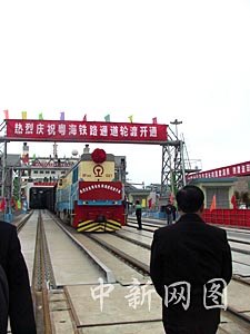 “粵海鐵一號”渡船注定會在中國交通史上寫下濃濃的一筆。隨著它今天上午的首航,中國大陸與海南島之間沒有鐵路相通的歷史一去不復(fù)返了。記者有幸參加“粵海鐵一號”的處女航,印象十分深刻!盎浐hF一號”是粵海鐵路跨海運(yùn)輸?shù)闹饕煌üぞ撸諒纳虾5诌_(dá)?,該渡輪總造價(jià)四點(diǎn)二億元人民幣,為柴油機(jī)雙推進(jìn),整個(gè)渡輪共分三層,最頂層可同時(shí)停放裝滿貨物的汽車五十輛,中間層載客,前后四個(gè)大客艙;最下層裝載客運(yùn)列車,四對鐵軌各長一百四十五米,可停放四十節(jié)貨車或十八節(jié)客列。據(jù)悉,“粵海鐵二號”也將于今年四月交船并投入使用,屆時(shí),將與“粵海鐵一號”對開“擺渡”。