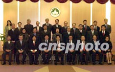 李瑞環(huán)與澳門特區(qū)政府主要官員合影。