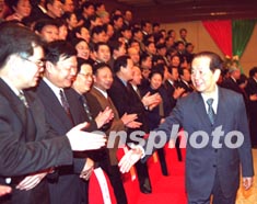 國務(wù)院副總理錢其琛八日在北京會(huì)見“全國僑辦主任會(huì)議”的與會(huì)代表,新任國僑辦主任陳玉杰(右)參加了會(huì)見。作者:滿會(huì)喬