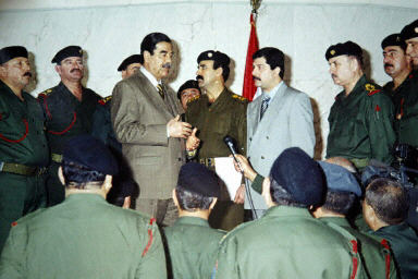 圖:伊總統(tǒng)薩達(dá)姆接見(jiàn)共和國(guó)衛(wèi)隊(duì)高級(jí)將領(lǐng)