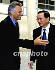 圖:中國外交部部長唐家璇與法國外長會(huì)談