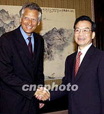 中國國務院副總理溫家寶,九日在北京會見法國外長德維爾潘。作者:鄭萍萍