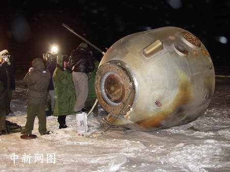 2003年1月5日,返回艙在太空中運(yùn)行六天零十八小時(shí)、繞地球108圈后,在內(nèi)蒙古中部預(yù)定區(qū)域準(zhǔn)確著陸。孫陽(yáng) 攝