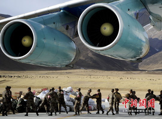 圖:中國(guó)空軍每天多架次運(yùn)輸救災(zāi)物資