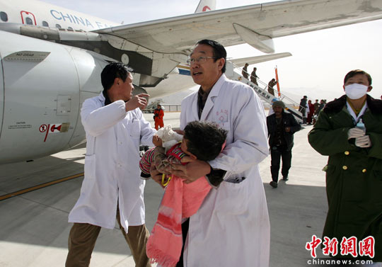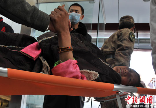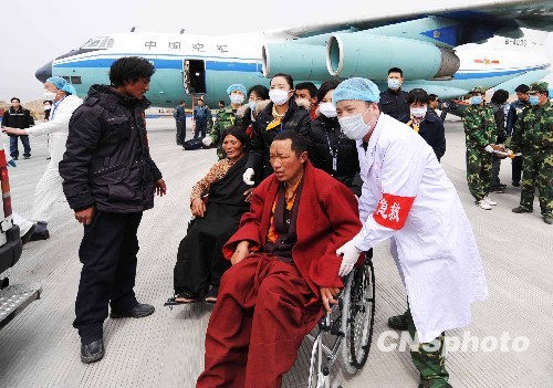 玉樹地震災(zāi)區(qū)14名藏族重傷員轉(zhuǎn)移至西寧
