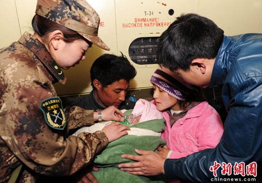 玉樹災(zāi)區(qū)醫(yī)療隊(duì)搶運(yùn)受傷嬰兒