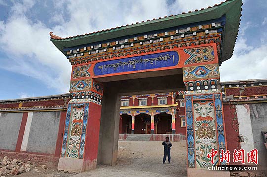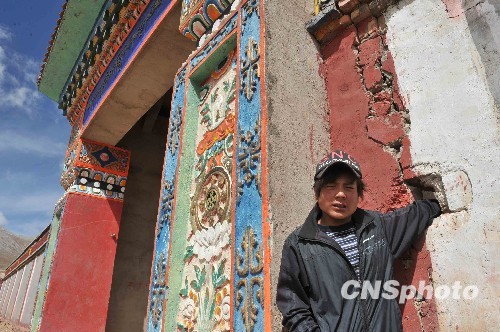 圖:玉樹震中點(diǎn)日查榮寺寺門兩邊出現(xiàn)裂縫