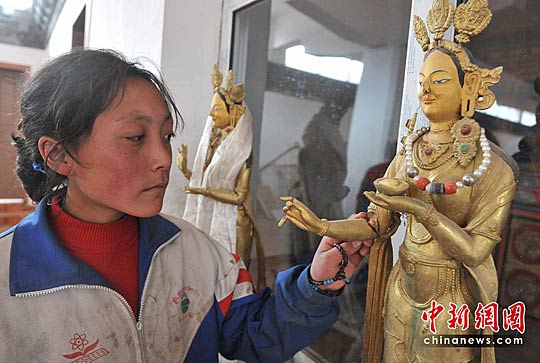 青海玉樹地震:震中點(diǎn)寺院的文成公主塑像局部損壞