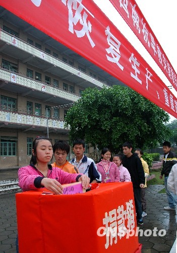 圖:大苗山師生踴躍為玉樹災(zāi)區(qū)捐款