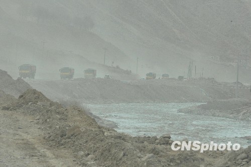 玉樹災(zāi)區(qū)抗震救援隊(duì)在風(fēng)沙中積極救災(zāi)