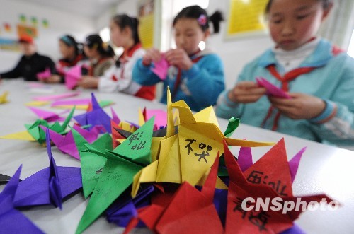 江蘇揚(yáng)州:疊千紙鶴 為玉樹祈福