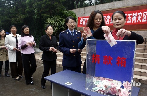 四川華鎣:市民踴躍為玉樹災(zāi)區(qū)捐款獻(xiàn)愛心
