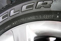 來到車身側面我們更加會覺得QX56的龐大,整體造型圓潤,沒有多余的線條作為修飾,但是反而會讓人感到車身很厚實。無鑰匙進入也毫無懸念的裝配在了QX56身上,兩側翼子板上的散熱孔并非形同虛設,而是告訴我們它裝載了一臺V8 5.6升汽油發(fā)動機。其次英菲尼迪慣用的大尺寸輪轂同樣被裝到了這款新車上,22寸9幅造型的鋁合金輪轂使我不得不說很有氣勢,與之搭配的是普利司通275\50 R22輪胎,抓地力應該相當不錯。