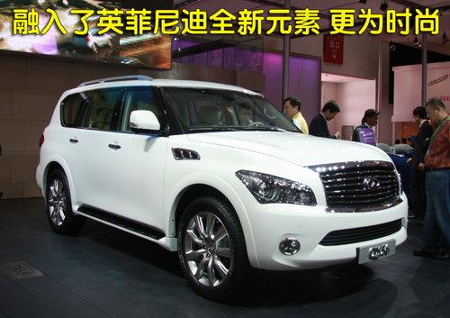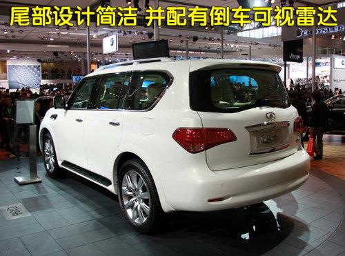 近年來SUV車型持續(xù)火爆,各廠商陸續(xù)推出新的車型以增加市場競爭力。同時性能強悍,寬大舒適的大型SUV,也得到了一些具有獨特品位喜歡運動且資金富裕消費者的最愛,因此大型豪華SUV市場也受到了不少消費者的關注。英菲尼迪是日系高端品牌中最具有藝術氣息的,今年在北京車展上就展出了全新一代的QX56,QX56作為一款7座豪華SUV車型,一經(jīng)推出就立刻受到了的中國消費者的關注。近日我們從英菲尼迪4S店銷售人員處獲悉到,全新的英菲尼迪QX56將于今年9月份到店,預計售價160萬元左右。銷售人員還表示,目前各4S店均已開始接受預定,訂金10萬,第一批車主將于10月份提到現(xiàn)車。下面就讓我們回顧一下,在2010北京車展上見到的英菲尼迪QX56。