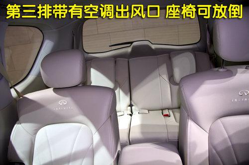 接下來我們就要說到第三排座椅了,也許這里的使用次數(shù)并不會很多,但是英菲尼迪同樣為第三排乘客提供了空調(diào)出風(fēng)口,大大提高了舒適度,如果有人故意將我擠到最后面的話,我想我還是可以接受的。如果當(dāng)你需要更大的空間作為儲物用途時,第三排座椅可以進(jìn)行4/6拆分放倒,這一點(diǎn)你要相信它的實(shí)力?傊绻阈枰恍﹤性,又想兼顧品質(zhì)與豪華舒適,這款英菲尼迪全新QX56應(yīng)該會很貼合你的想法。