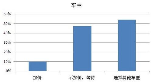 車主二次購車時對加價購車的反感要高于準車主3倍。10%的車主表示接受加價,34%的準車主愿意加價。相比之下,準車主加價購車的可能性是車主的三倍。