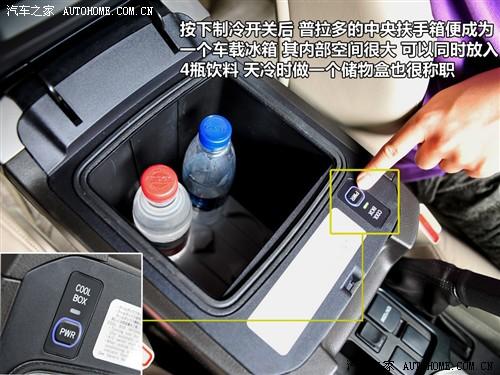 普拉多前排門板的儲物槽很寬很深,而且有單獨的杯架位置。而中間位置的兩個杯架都帶有限位機構(gòu),實用性很強。最大的亮點是前排的中央扶手箱,打開制冷開關(guān)后,它就成為一個可以容納4瓶飲料的車載冰箱啦。