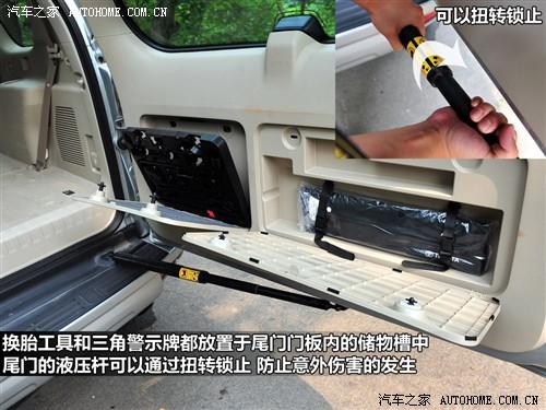 普拉多尾門的液壓桿可以通過扭轉(zhuǎn)進(jìn)行鎖止,這樣可以有效防止因?yàn)檎`關(guān)車門帶來的意外傷害,這個(gè)設(shè)計(jì)不需要太多成本但是非常體貼。而另一個(gè)小亮點(diǎn)是后備廂內(nèi)的一個(gè)220V交流電源,接些小電器非常方便。