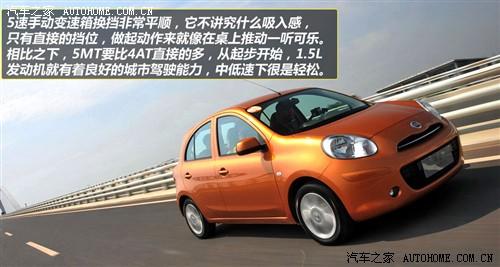 目前,該車搭載的是一臺全新的1.5L發(fā)動機(jī)(代號HR15DE),最大功率79Kw;最大扭矩138N·m。要知道在歐洲,瑪馳還有另外兩款發(fā)動機(jī)可供選擇,一臺是最大功率為59kw,最大扭矩108N·m的1.2L 3缸發(fā)動機(jī);另一臺則是1.2L機(jī)械增壓直噴發(fā)動機(jī),最大功率72kw,最大扭矩142N·m;與這兩款發(fā)動機(jī)相匹配的是5AT或CVT變速箱。然而,引進(jìn)到國內(nèi)后,東風(fēng)日產(chǎn)瑪馳的動力總成部分改為了現(xiàn)在的1.5L發(fā)動機(jī)+5MT或4AT變速箱。
