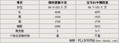 保時(shí)捷新卡宴是保時(shí)捷推出的換代車(chē)型,在外形的改變、內(nèi)飾的改變還有動(dòng)力系統(tǒng)的改變上都非常的多。而B(niǎo)MW X5屬于第二代X5的中期改款車(chē)型,因此在外形的改變上并不十分明顯,依然保留了很多第二代X5的經(jīng)典元素。