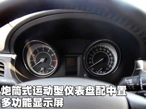 儀表盤采用了較為常見(jiàn)雙炮筒設(shè)計(jì),清晰易讀,中央還布置有行車電腦顯示屏,能夠顯示各種信息和提示,其上柔和的藍(lán)色光暈在夜間非常美觀。