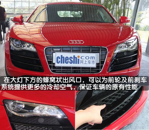 在車門后方,在輪拱和車頂之間,配有寬大的葉面?zhèn)瓤諝膺M氣口,為V10發(fā)動機的進氣及冷卻提供足夠的風量。側(cè)邊風葉的漆面效果與車身的顏色配合得天衣無縫,當然如果你有特別的需求和足夠的金錢,也可以把普通材料更換為碳纖維材料而那一定會很酷!此外,例如朱鷺白、幻影黑以及珠光效果等8種個性顏色,都是R8的可選外觀色彩。