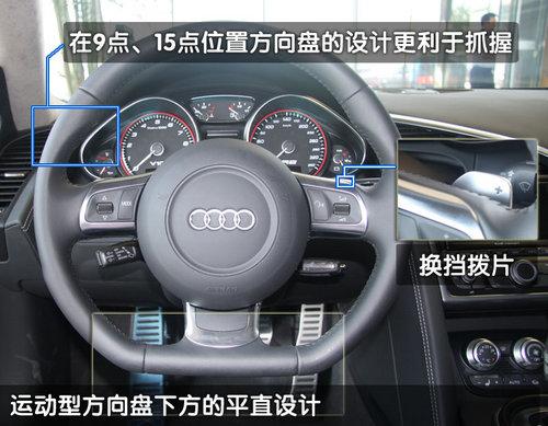 通過駕駛室內(nèi)的轉(zhuǎn)速表可以看出,這臺(tái)發(fā)動(dòng)機(jī)的轉(zhuǎn)速范圍可以達(dá)到最高9000轉(zhuǎn),而“紅色區(qū)域”從8000轉(zhuǎn)才剛剛開始。也就是說有它別于一般的車輛,為了得到最佳的功率和扭矩輸出,讓R8的發(fā)動(dòng)機(jī)保持在5-8千轉(zhuǎn)進(jìn)行工作是相對(duì)合理的。這時(shí),每一個(gè)聽到R8呼嘯的人也許都會(huì)說:“喔,我想那輛車一定非常棒!”奧迪R8提供了三幅真皮包裹的運(yùn)動(dòng)型方向盤,在10點(diǎn)和2點(diǎn)位置都有凸起從而方便駕駛員的抓握。多功能方向盤后方的換檔撥片可以在手動(dòng)模式下實(shí)現(xiàn)類似F1賽車式的換檔方式。