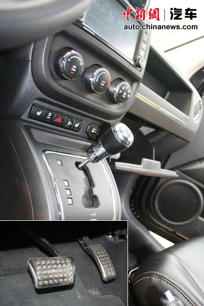 這臺指南者在內(nèi)飾方面的變化和外觀相比,在視覺效果上變化沒有外觀那么明顯,剎車踏板、油門踏板和檔把都采用了帶有金屬質(zhì)感鍍鉻件進(jìn)行了裝飾。