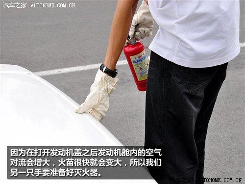 步驟三:發(fā)動(dòng)機(jī)蓋打開后由于空氣對(duì)流增強(qiáng),火苗會(huì)迅速變大,這時(shí)我們不能驚慌,拿著滅火器沖著發(fā)動(dòng)機(jī)艙亂噴,在保證自己安全的情況下,盡可能地將滅火器的噴射口接近并對(duì)準(zhǔn)著火點(diǎn)進(jìn)行噴射,同時(shí)呼救其他車型的援助(因?yàn)檐囉玫哪欠N小罐滅火器的容量有限)。