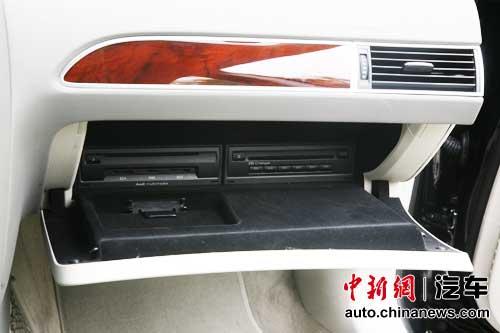 副駕駛的手套箱要按動中控面板上的按鈕來開啟。6碟CD、SD卡插槽、用在車載電話上的SIM卡插槽,以及DVD系統(tǒng)都在這里了。只是這樣一來,這個手套箱也就真的只能放手套用了……