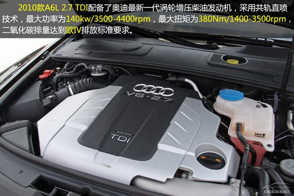 第一個上場的是一汽奧迪2010款A6L 2.7TDI車型。此車型代表了目前奧迪最先進的柴油發(fā)動機技術,而且是國內首款裝備柴油發(fā)動機的高檔車型,可以說是業(yè)內第一個吃螃蟹的,因此編輯選了這款作為柴油車型的代表。