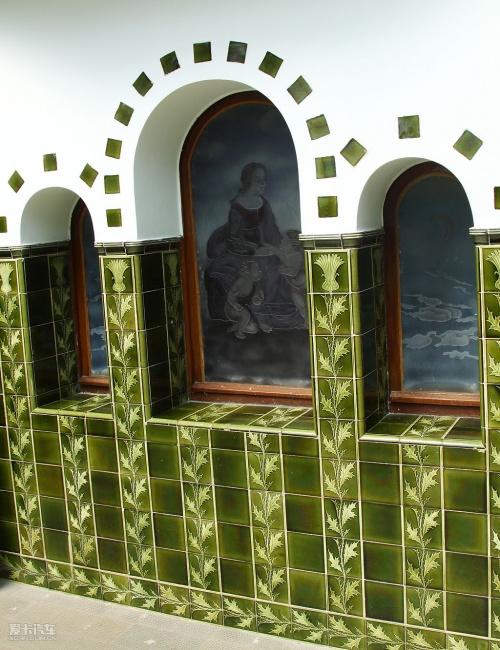 樓內(nèi)裝飾陳設(shè)異常華麗:銅制燈具、彩瓷鑲嵌壁爐依然光亮如新、雕花的天花板造型各異。