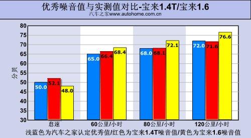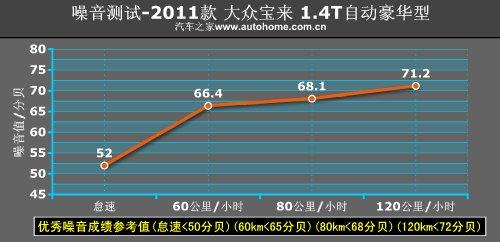 相信1.4T發(fā)動(dòng)機(jī)配合7速DSG的行駛特性大家都比較了解,車動(dòng)起來(lái)不過(guò)1200轉(zhuǎn)便從一擋切換至二擋,而之后的換擋動(dòng)作也都在2000轉(zhuǎn)之內(nèi)(日常駕駛)完成,因此發(fā)動(dòng)機(jī)噪音值會(huì)控制的很好,圖表中特意添加了之前測(cè)試的1.6L寶來(lái)的實(shí)測(cè)噪音值,可以看到除怠速之外都要比1.4T版本高出不少。美中不足的是與一些2.0L及更大排量的自然吸氣發(fā)動(dòng)機(jī)相比,在高速行駛時(shí)這臺(tái)1.4T發(fā)動(dòng)機(jī)傳到駕駛艙的某種震動(dòng)的響聲還是能察覺到的。
