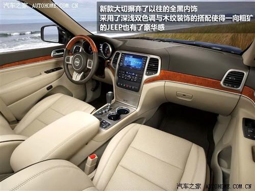 新款大切并沒(méi)有采用以往全黑的內(nèi)飾,采用了深淺雙色并加以木紋裝飾的設(shè)計(jì)風(fēng)格,與當(dāng)下不少好話SUV的設(shè)計(jì)思路比較相同,這也使得一向粗獷豪邁的JEEP有了豪華感。