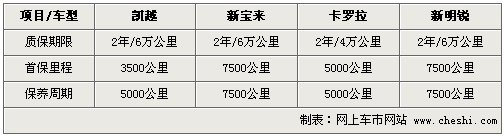 選擇的四款車(chē)型都是市場(chǎng)上相對(duì)銷(xiāo)量比較靠前的熱門(mén)車(chē)型,新凱越是別克旗下的緊湊級(jí)家用車(chē),質(zhì)保期為2年/6萬(wàn)公里,一個(gè)合資車(chē)比較常規(guī)質(zhì)保期限。同為2年/6萬(wàn)公里還有一汽大眾品牌的新寶來(lái),以及上海大眾斯柯達(dá)的新明銳。豐田卡羅拉是四款車(chē)型中唯一一款日系車(chē)型,2年/4萬(wàn)公里的質(zhì)保期比較起來(lái)少有遜色。