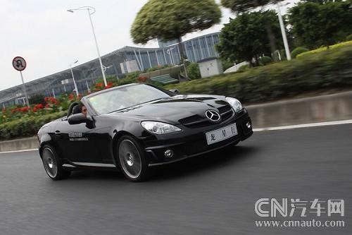 盡管SLK55的動(dòng)力是現(xiàn)有AMG車款中的最小者,可是360匹的馬力外加七檔密齒比變速箱,推動(dòng)一噸半多的車身還是很嚇人。為了先熟悉這個(gè)恐怖的家伙,所以首段選擇了自動(dòng)模式試駕,當(dāng)然如果緩踩油門,速度線性的向上升,在不知不覺中便能達(dá)到120km/h。當(dāng)你熟悉之后,嘗試調(diào)至手動(dòng)模式,深踩油門,便會(huì)有一股莫名的推背感推著你前進(jìn),到了紅線區(qū)域動(dòng)力才開始衰退,接著再換上2檔,動(dòng)力繼續(xù)源源不絕的向上拉升,遺憾此車的行車電腦限速120km/h。