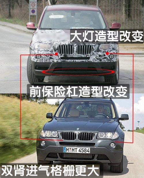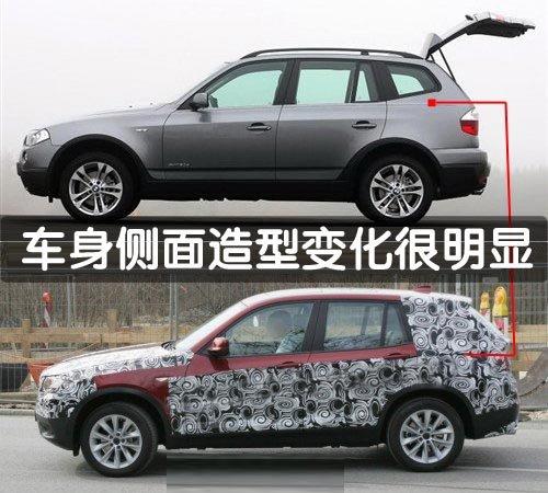 與目前的車型相比,這款 X3車型的尺寸幾乎沒有發(fā)生什么變化,其車型風(fēng)格體現(xiàn)了CS概念車上的一些元素。整體車身外觀沒有發(fā)生什么變化,但這款新車型預(yù)期將采用更為突出的散熱格柵及新的前車燈設(shè)計(jì)。除了車身外觀上的一系列改進(jìn)外,新車型還將采用一系列新配置,以此來(lái)迎戰(zhàn)來(lái)自?shī)W迪與奔馳的競(jìng)爭(zhēng)。新車型配置了寶馬X6車型上的夜間平視顯示器,其雙氙氣前車燈還具有環(huán)景照明功能。