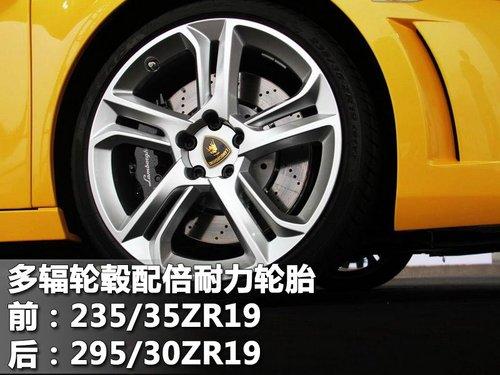 Gallardo LP 550-2的鏤空式設計輪轂非常的動感,配合前235/35ZR19后295/30ZR19倍耐力高速胎,讓您在極速駕駛時同樣獲得良好的抓到力。
