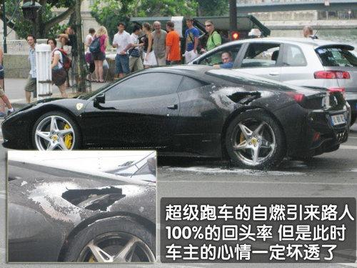 不過近日一則來自法國的消息不僅僅意味著一臺(tái)名貴的法拉利已經(jīng)報(bào)廢,同時(shí)也讓我們?cè)俅螌⒛抗馔断蛄顺?jí)跑車的頻繁自燃。這一次事故發(fā)生在法國巴黎,這位身著紅色衣服的車主看上去絕對(duì)是一個(gè)超級(jí)的法拉利車迷(從他紅色的衣服就能看出來)。據(jù)他介紹他的這臺(tái)嶄新的458才僅僅買了幾天就這樣被燒毀了。