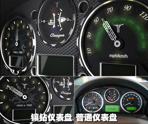 路虎攬勝運動版改裝車采用了全新設(shè)計的儀表盤,黑底白光的設(shè)計,儀表盤指針也采用復(fù)古的鏤空造型,顯得非常經(jīng)典、尊貴。仔細(xì)看這款車的儀表盤,我們可以在轉(zhuǎn)速表的表盤內(nèi)看到很多鑲嵌的鉆石,這種設(shè)計不同于外部改裝,但卻比普通改裝奢華萬分,整車的品味得到迅速提升。