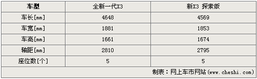 車身尺寸方面,換代寶馬X3長寬高分別為4648mm/1881mm/1661mm,軸距為2810mm,全方位提升了整車的內(nèi)部乘坐感受。相比老款X3,其長度延長了83mm,寬度拓寬了29mm,高度提升了40mm,軸距同時也得到了15mm左右增長數(shù)值。車內(nèi)空間的寬大可想而知。