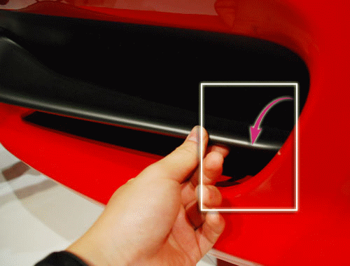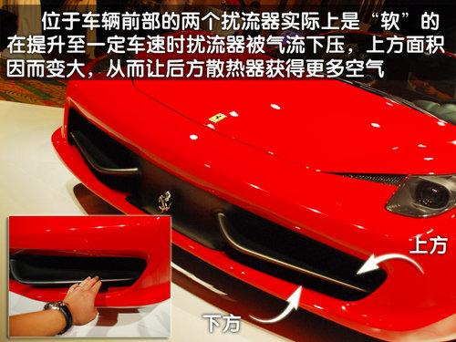 轉(zhuǎn)到車頭的上方您會(huì)發(fā)現(xiàn)在458Italia的大燈一側(cè)會(huì)有一個(gè)隱藏的通風(fēng)口,這里的設(shè)計(jì)能夠讓從車頭過來(lái)的氣流在經(jīng)過這里的時(shí)候進(jìn)入通風(fēng)口,使其變?yōu)橐嫔崞饕约扒拜唲x車系統(tǒng)的冷卻氣流,類似這樣的巧妙設(shè)計(jì)還有很多。