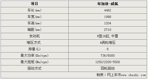 布加迪威龍(VEYRON)這個(gè)名字源自曾經(jīng)駕駛布加迪57贏得1939利曼桂冠的Pierre Veyron。而16.4代表16個(gè)氣缸和4個(gè)渦輪增壓器。 這款車配備了大眾專門研發(fā)的W型16缸發(fā)動機(jī),可以說是將兩臺V8發(fā)動機(jī)公用一根曲軸的產(chǎn)物。此外,該發(fā)動機(jī)還配備了4個(gè)渦輪增壓器。排量達(dá)到了7993cc。可以迸發(fā)出736千瓦的最大功率,同時(shí)在極低的1000rpm時(shí)即可輸出730牛米的龐大扭矩,在2200rpm時(shí)就可以迸發(fā)出1250牛米的峰值扭矩,這種扭力會一直持續(xù)到5500rpm。