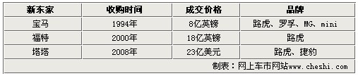 15年內(nèi)路虎3次被收購(gòu) 總值超過60億美元